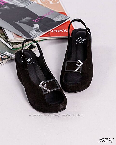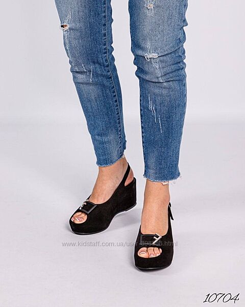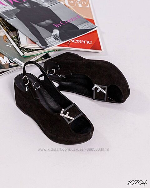 Подробное описание: Стильні босоніжки на танкетці Натуральна італійська замша