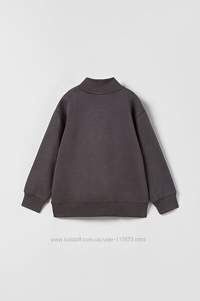 ZARA Толстовка с воротником в стиле trucker и длинными рукавами. Застежка-молния на кокетке, передний карман. Детали в рубчик.антрацитово-серый