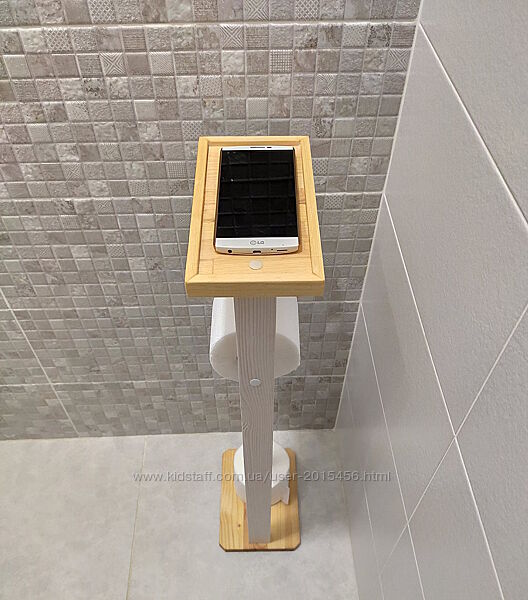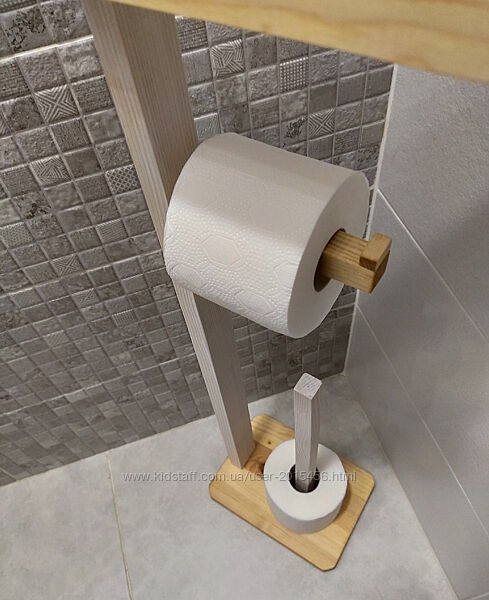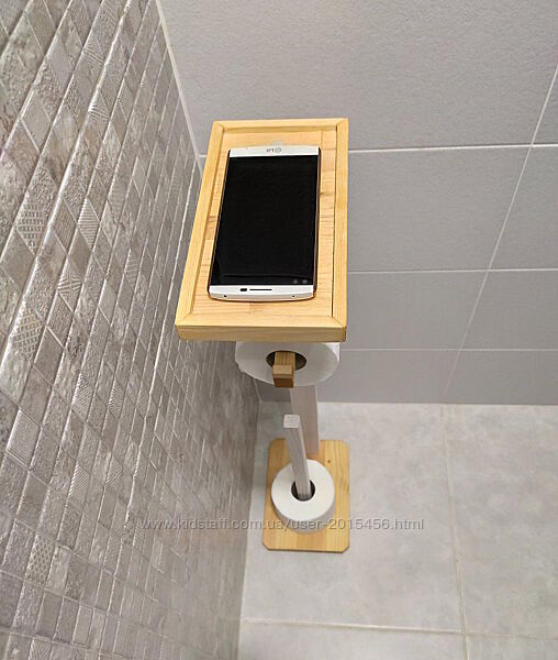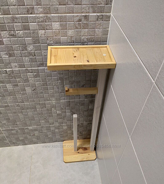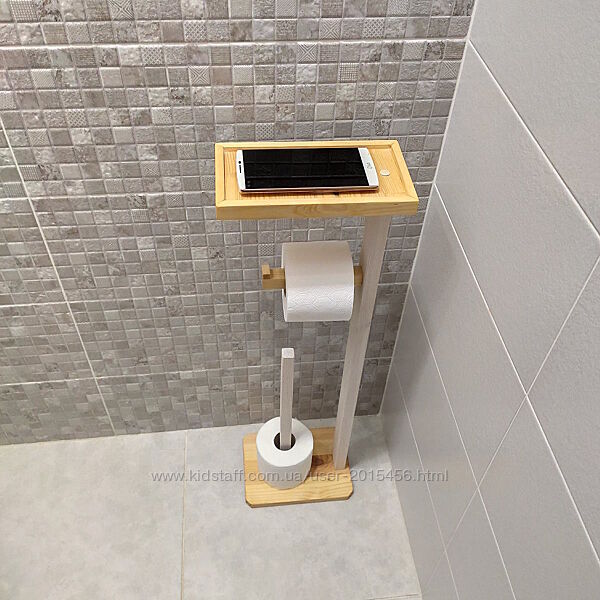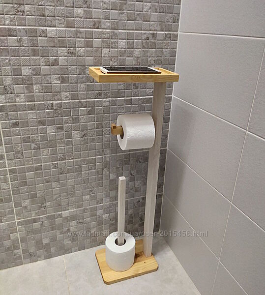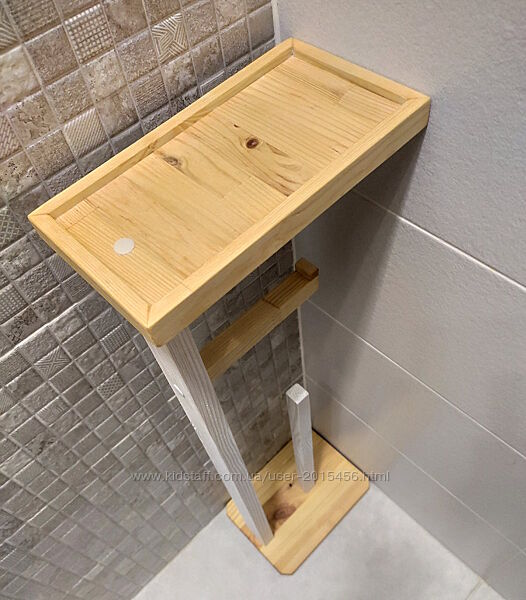 Практична дерев´яна підставка для туалетного паперу на підлогу дозволить підтримувати лад у ванній кімнаті чи туалеті. Ручна робота.Підлоговий тримач має поличку для освіжувача повітря, телефону тощо.