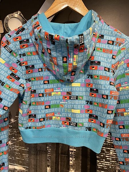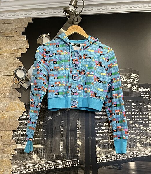 Гарне якісне вкорочене худі польського виробника Fashion House, з капюшоном, який регулюється зав´язками, худі блакитного кольору з яскравим кольоровим принтом, застібається на великі сині гудзики, дуже м´яка та приємна до тіла, на бірці розмір L, підійде і на S /M.Другие объявления продавца