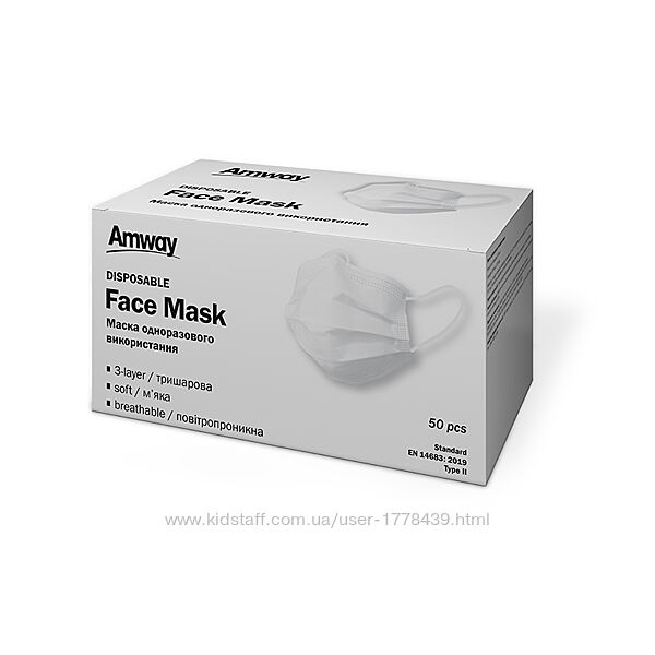 Подробное описание: Маска одноразового використання Amway Упаковка з 50 одноразових масок