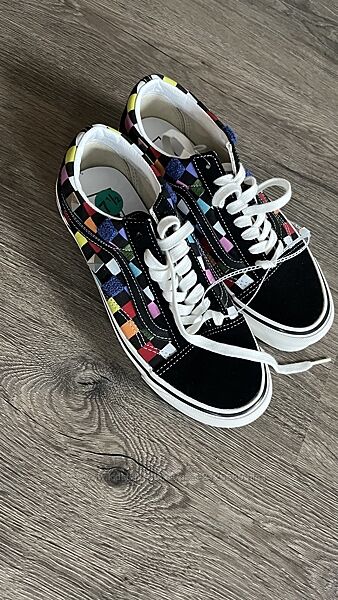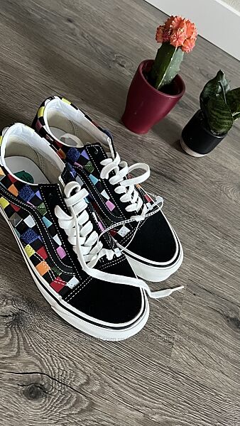Модні кеди Vans, в фірмові «шашечки», цього разу різнокольорові. Веселі та цікаві кеди🖤
