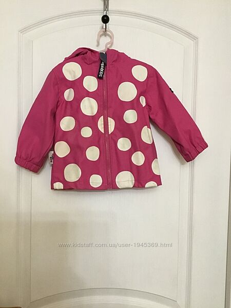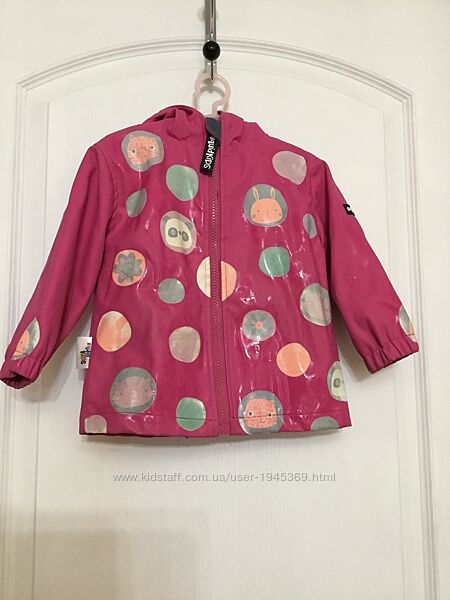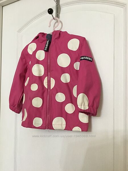 Чудова курточка фірми Squid Kids, детальна інформація за посиланням [ссылка удалена]Курточка на хлопковій підкладці. Зверху прорезинена тканина. Коли вода потрапляє на курточку, білі кружечки змінюють колір (див. фото). Розмір вказан YS, для дитини 1-3 роки. За запитом зроблю необхідні заміри та фото.
