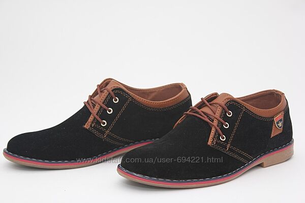 Туфлі зроблені з штучної шкіри, та штучної замші.Модель зроблена з штучної замші, в наявності залишились 40 розмір -26см довжина устілки та 43-28см довжина устілки