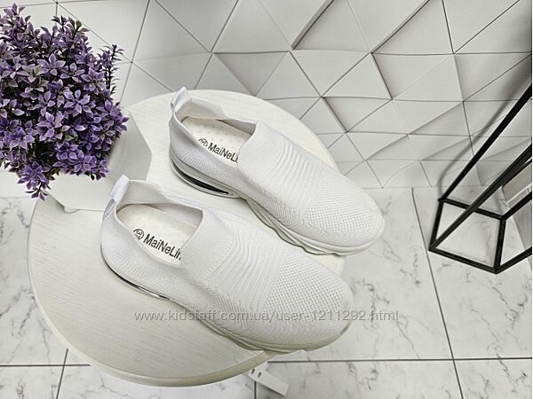 Подробное описание: Кроссовки легкие текстильные белые с компенсатором