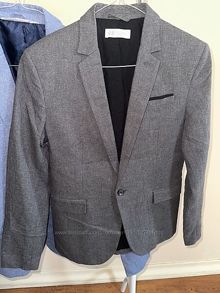 Нові піджаки від H&M,сірий,на 13-14 років. Такий саме синій на 12-13.Кармани зашиті. Склад чудовий, натуральний: 80%вовни,20%бововни. В школу, під джинси- супер. 400грн. Заміри: Плечі 39см, рукав 57см довжина 64см, талія 40см, під пахвами 46 см. Синій піджак виявився трішки бракованим всередині, продаю за 250грн..Передплата 200грн( за один) Продивлятись на відділенні пошти, поверню не підлягає.