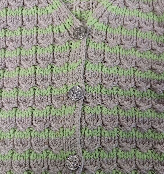 Подробное описание: Бежево-салатова вязана жилетка р. 1,5-2 роки