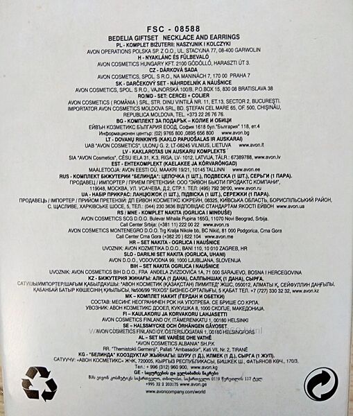 Подробное описание: Набір AVON - ланцюжок та сережки Белінда