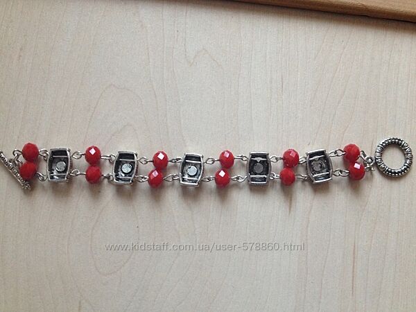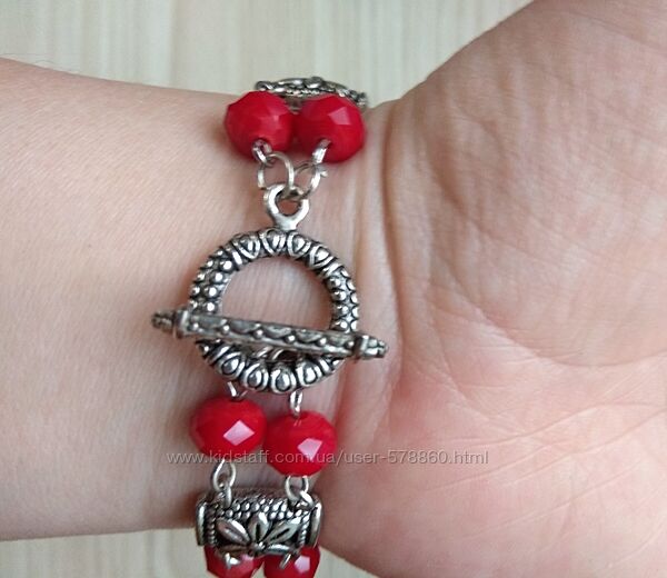 Сіро-червоний браслет ручної роботи.Гарний, з червоними намистинами.