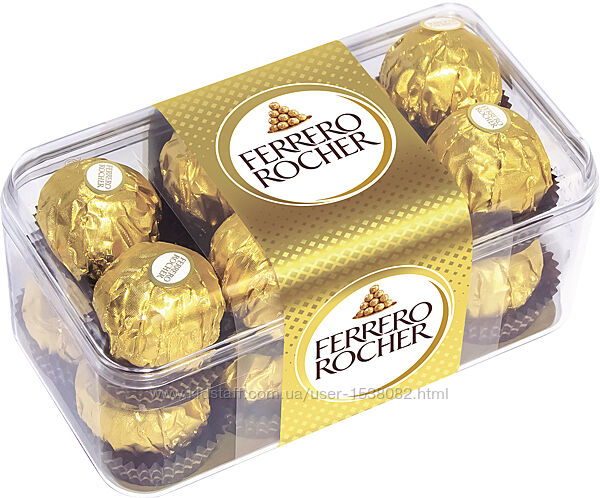 Ferrero Rocher - хрусткі вафельні цукерки, покриті молочним шоколадом та подрібненими лісовими горіхами, з начинкою та цілим лісовим горіхом усередині. Бездоганний подарунок.Вага: 200 гр (16 штук).