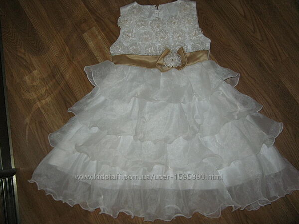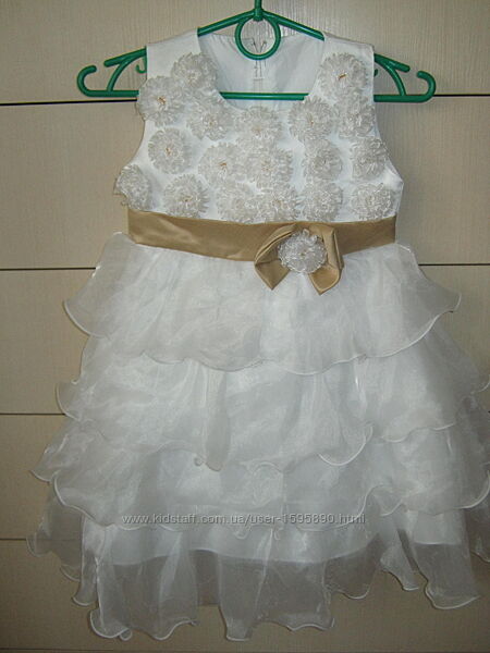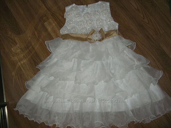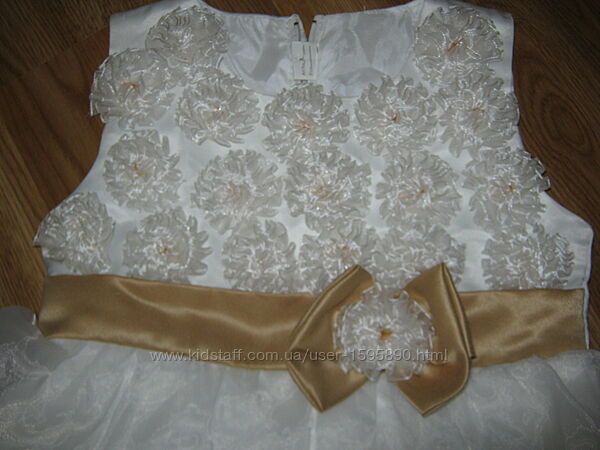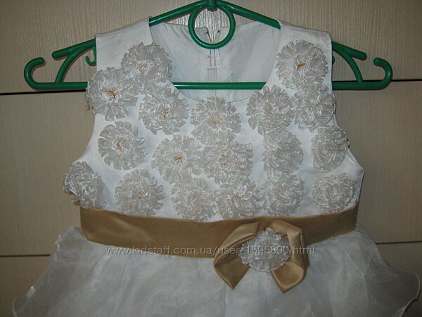 Подробное описание: Платье пышное нарядное белое с золотым поясом на 3года 98р. Сукня нарядна