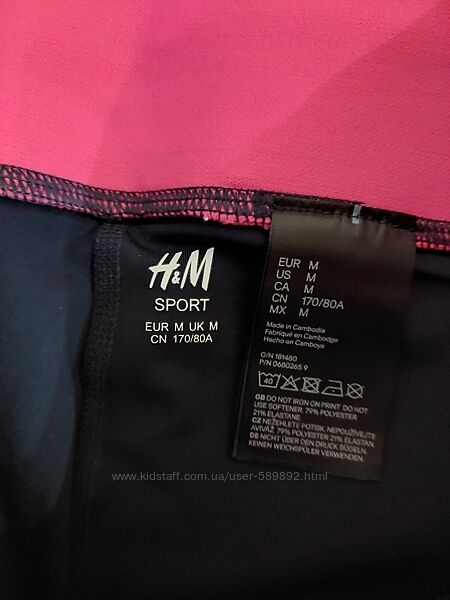 Спортивні легінси Н&М розмір М, але фактично йдуть на розмір S.Склад: 79% поліестер, 21% еластан.
