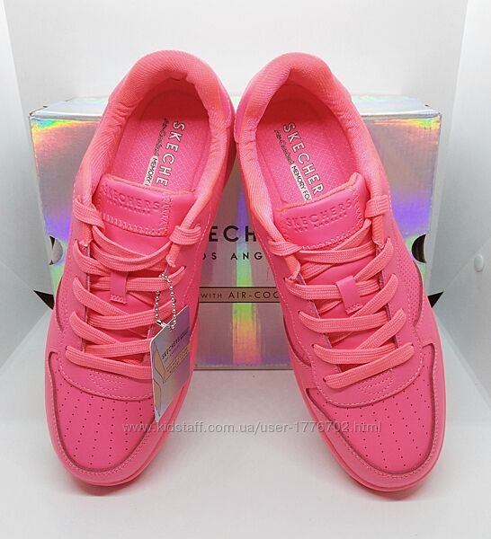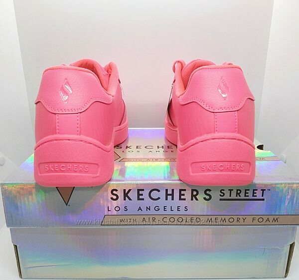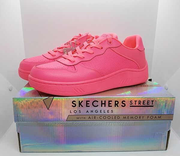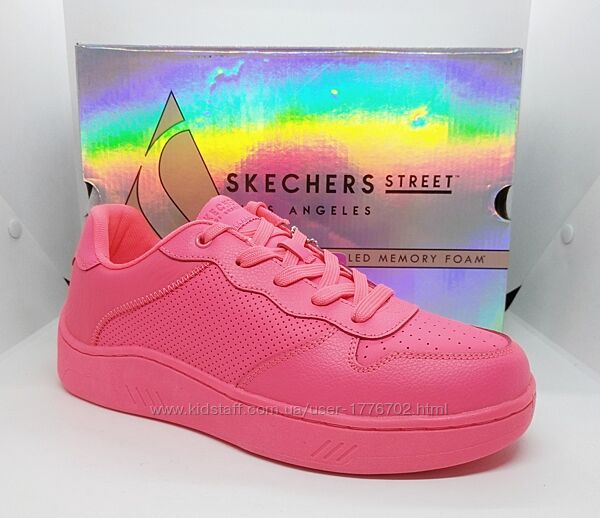 кожаные кроссовки кеды Skechers оригиналверх из комбинации натуральной кожи и эко кожи ярко розового цвета
