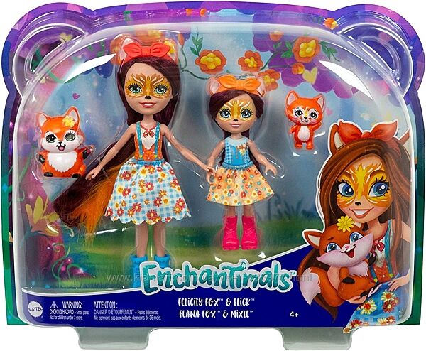 Зустрічайте сестричок-лисиць Enchantimals - вони чарівні, нерозлучні та такі чарівні!Ляльки Фелісіті Фокс (6 дюймів) і Феана Фокс (4 дюйми) можуть «триматися за руки», щоб показати свій особливий зв’язок між братами та сестрами.Вони одягнені в відповідне вбрання зі знімними аксесуарами для модної гри.