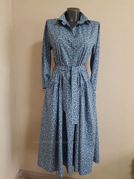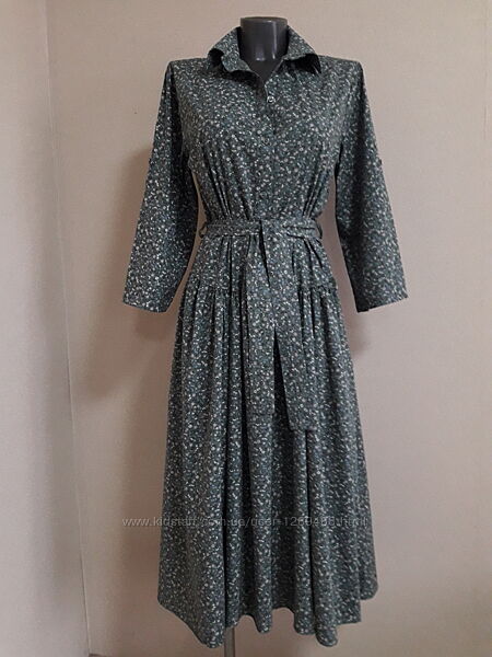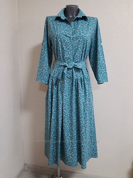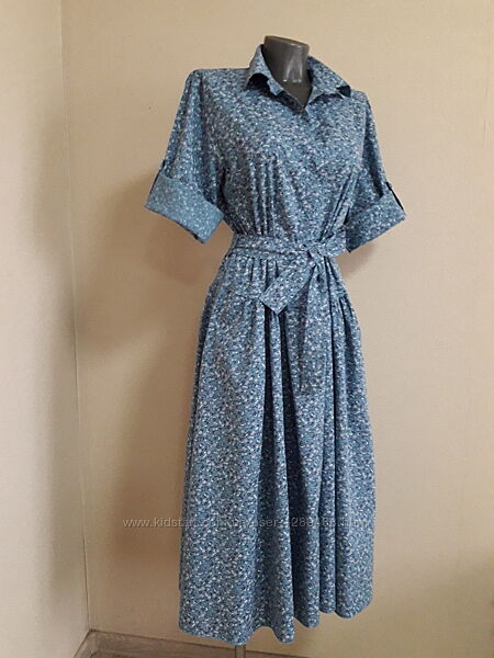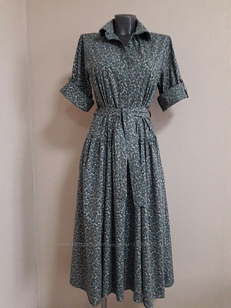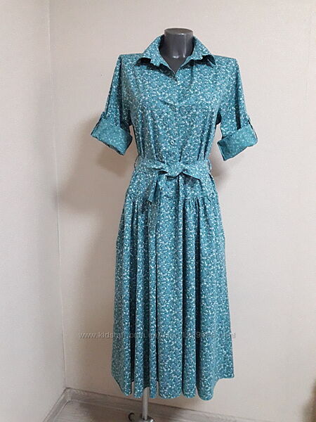 Элегантное,стильное,эффектное,деловое платье-рубашка,миди под поясКрасивая заметная,стильная модель весене-летнего сезона!Модель с комфортным рукавом 3/4 и с укороченным вариантом.Спереди на пуговицах до пояса.Платье со стильным отложным рубашечным воротником и боковыми карманами. Красивый пышный низ воланами.Эффектный,всегда в тренде, мелкий цветочный принт!Натуральная хлопковая ткань,не тонкая,средней плотности.Супер качество!