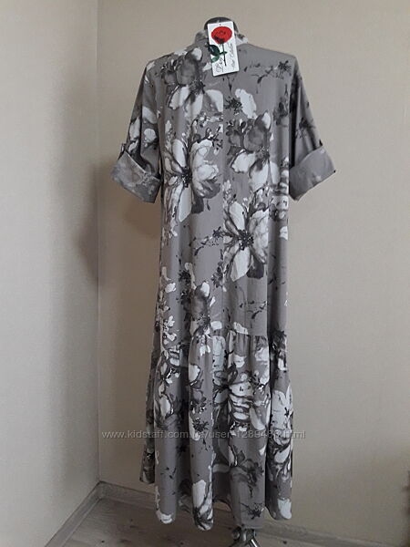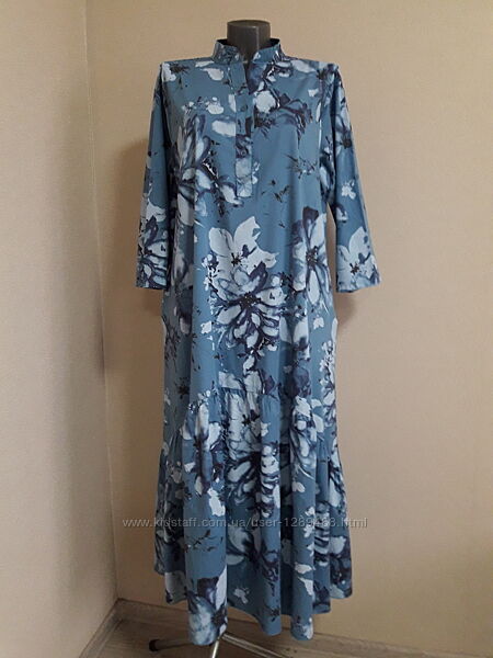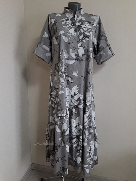 Эффектное,яркое,качественное просторное платье-рубашка в пол,в стиле бохоКрасивая,стильная,заметная модель весенне-летнего сезона!Платье с рукавом 3/4 и с укороченным вариантом с отворотом на пуговице.Модель-оверсайз,свободного,комфортного просторного кроя в стиле бохо,трапециевидной формы,А-силуэта,с боковыми карманами,с классическим рубашечным воротником-стойкой!Натуральная,люкс качества,хлопковая ткань-жатка средней плотности.Элегантная,стильная,яркая,заметная и очень комфортная модель!Всегда в треде,-крупный цветочный принт!Микс стилей и образов!