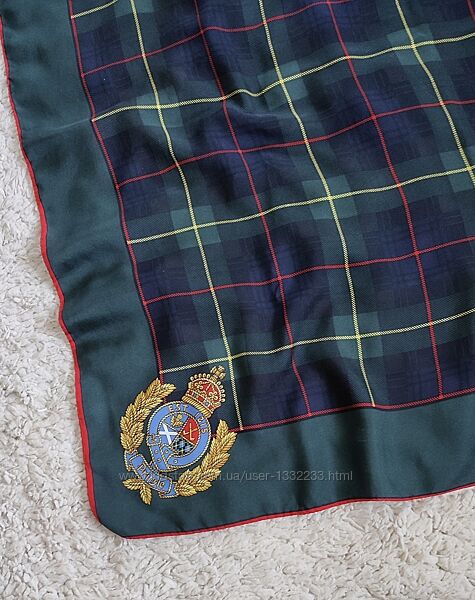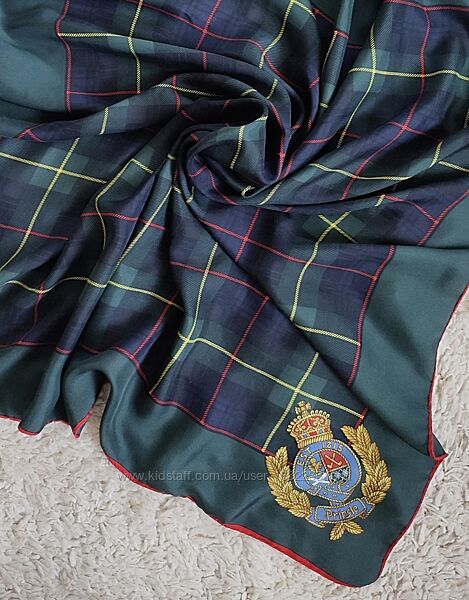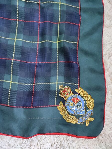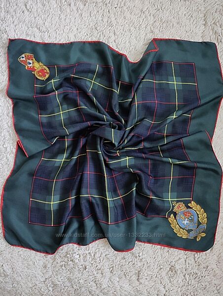 Гарна велика зелена хустка з червоним краєм. Принт у шотландську клітинку та герби. Логотип Pringle в кутку. Етикетка виробника .