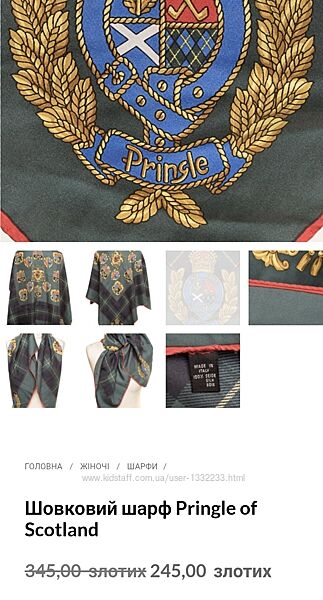 Подробное описание: Шовкова вінтажна хустка Pringle of Scotland