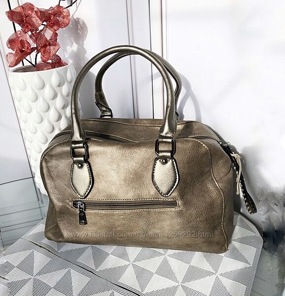 Сумка из экокожи вместительная Отличное состояние, отличное качество, покупалась дорого. Из следов носки- едва заметные потертости на углах дна(последнее фото)) Цвет, как на фото- серебристо- бронзовый. Ширина по низу 35 Высота 26,5 Глубина 15 Отделения : 1 наружный карман на молнии 5 внутренних( из них 2 на молнии) 1 основное большое Ручки высота 20