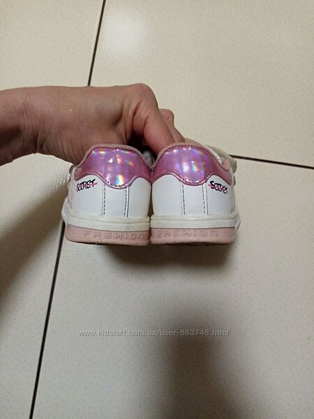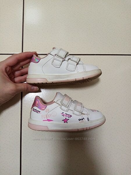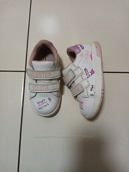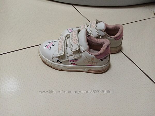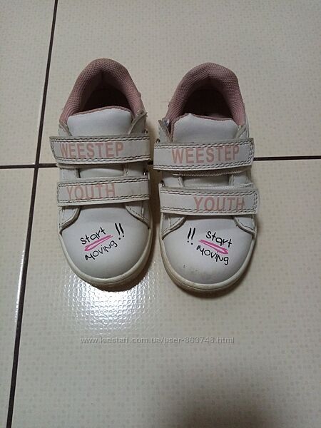Дуже класні білі кеди-кросівки на дівчинку Weestep. Вказано 25 розмір, але чуть маломірять, ми носили на 24( устілка 15.5 см). Зручні, на двох липучках, всередині мякий текстиль. Шкіра не промокає. Є маленька потертість на лівому, майже непомітна. Носяться дуже добре.Другие объявления продавца
