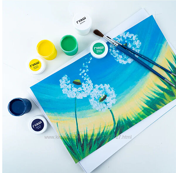 Гуаш Kite має важливу особливість: не розтріскується після висихання. Малюнок можна сміливо вішати на стіну.