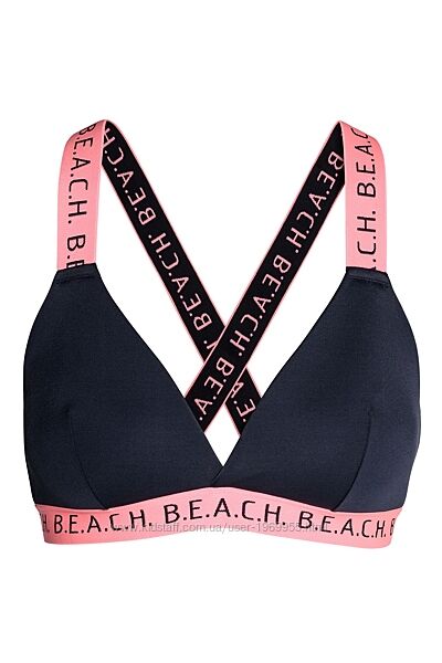 Верх бікіні на підкладці з м’якими чашками, широкими перехрещеними лямками та пластиковою застібкою ззаду.Склад - Поліамід 80%, Еластан 20%