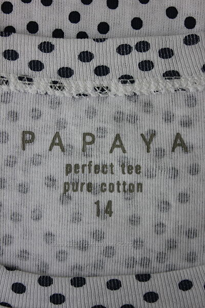 Футболка в рубчик , в горошек papaya, 100% хлопок, шикарное качество! Садится на свой размер, как и все ткани в рубчик. Тот редкийслучай когда надо брать по размеру, а не по замерам.