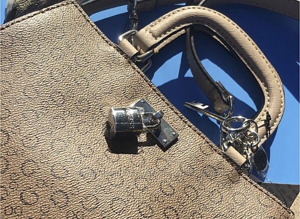 сумка прикрашена фурнітурою-замочками Guess.