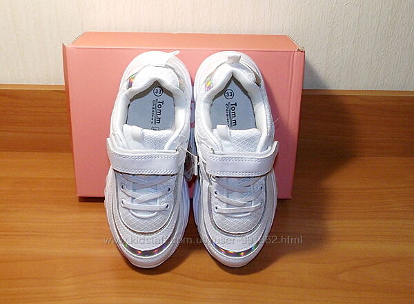 Кроссовки ТОМ.М Гламурные белые кроссовки для девочек.Новинка ! Внутри кожаная стелька. Есть супинатор.