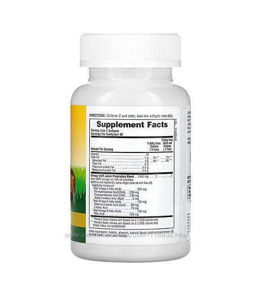 Запатентована суміш омега 3/6/9 для дітей (олія бурачника без ГМО, риб´ячий жир [сардина, анчоус та скумбрія], лляна олія та оливкова олія холодного віджиму.) = 1040 мг