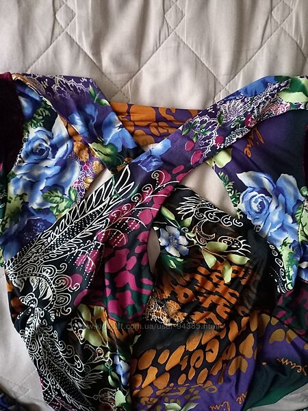 В наличии красивая кофточка-туника, а на маленький рост как и платье может быть. На р. 36-38 (с-м) Длина ~ 85. Внизу как бархатное. Состава нет, не теплое, скорей ткань такая "холодная" Оригинальная спинка. От груди не узкое, там складки. Состояние отличное, было одето пару раз.