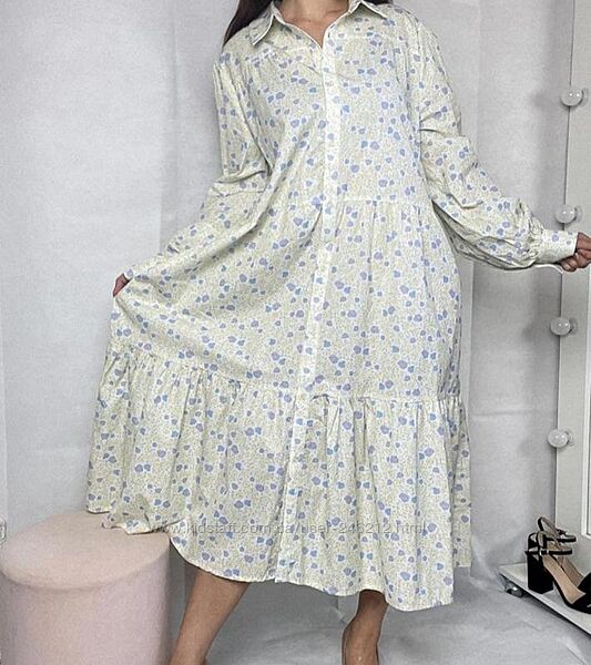 Сукня виконана в сорочковому стилі, А-силует, довгий рукав при бажанні можна підкатати.