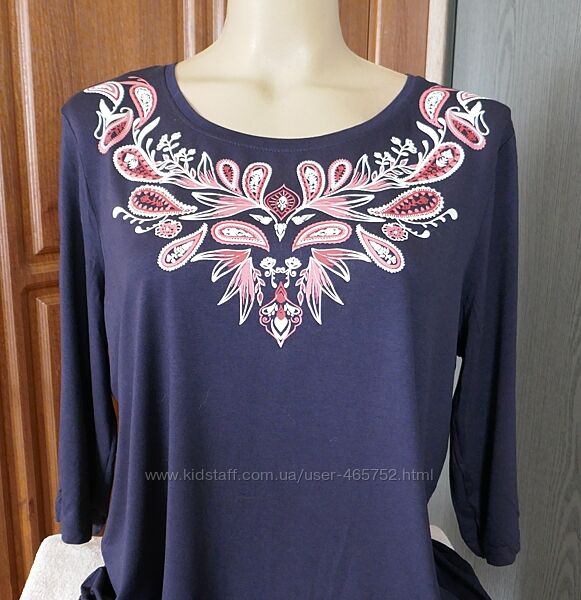 Женственная легкая блуза изготовлена из вискозной ткани. Блузкакрасивого темно синего цвета с красивой вышивкой. Достаточно свободный прямой
