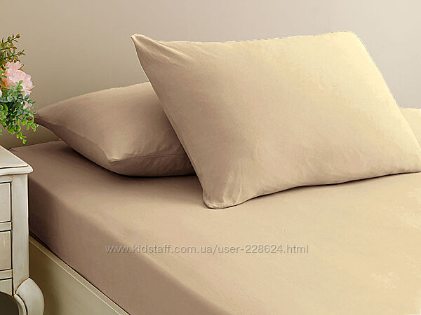 Простирадло на гумці з наволочками турецького виробництва, бренд First Choice.Простирадло на гумці цільно облягає матрац, що значно спростить вам життя. Вона легко фіксується на матраці і не створює складок, в результаті чого вам не потрібно буде нескінченно перестилати її, на відміну від звичайного простирадла. Створена з однотонної бавовняної тканини, що дає можливість розтягуватися і не деформуватися. Гумки вшиті по краях виробу і надійно утримують простирадло на матраці.