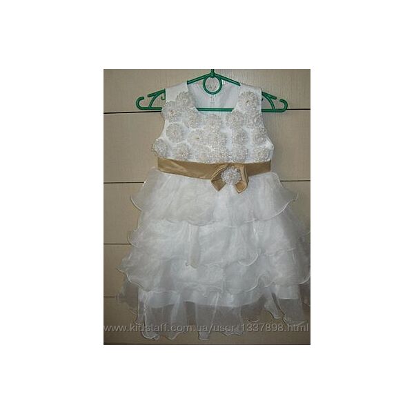 Подробное описание: Платье пышное нарядное белое с золотым поясом на 3года 98р. Сукня нарядна