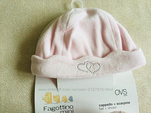 OVS Італія комплект шапочка і пінетки. велюр. прикрашені стразами. ніжно -