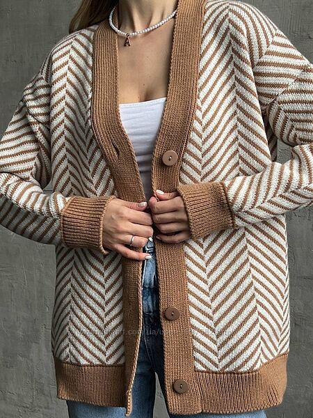 Подробное описание: Наш новий кардиган на ґудзиках з візерунком ялинка - це відмінний вибір для