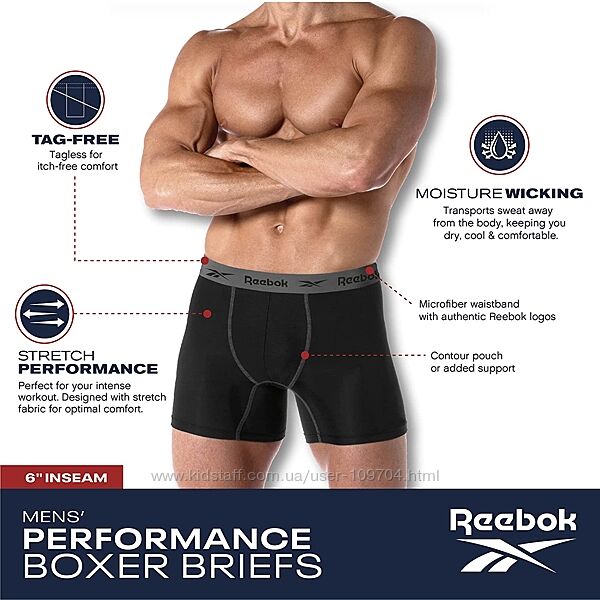 4шт Влагоотводящие высокотехнологичные термотрусы Reebok-Performance Boxer Briefs Оригинал.Состав - 92% polyester, 8% spandex