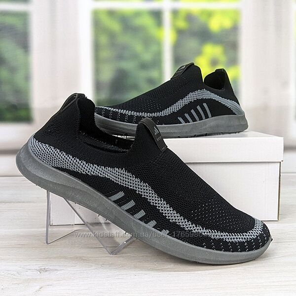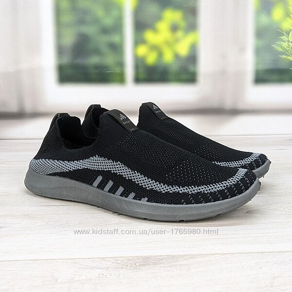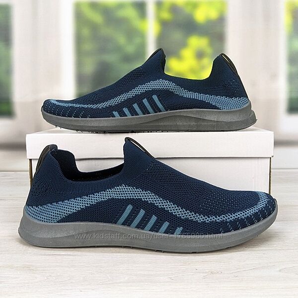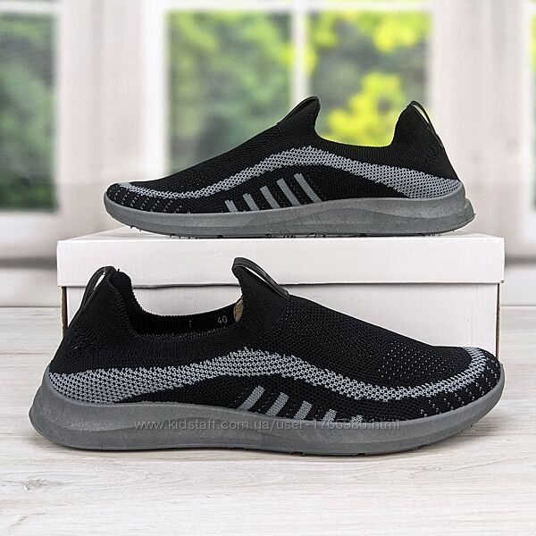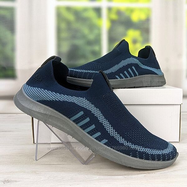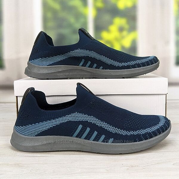 Мужские кроссовки мокасины, текстильные в черном и синем цвете с серыми полосками. От украинской фабрики PaollaПодошва ПВХ, эластичная и удобная. Высота 1,5-2 смВерх из прочного текстиля (сетка).Сверху резинка, которая хорошо фиксирует ногу.