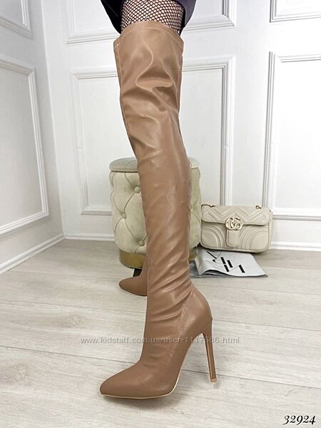 Подробное описание: Бежеві ботфорти на шпильці, арт. 32924