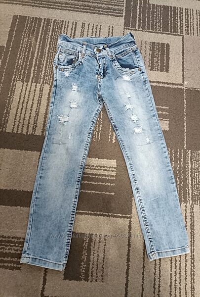 Стильные джинсы для стройных мальчишек. Ткань стрейч, книзу заужены, джинс тоненький на весну и лето. В поясе утяжка. Фабричная Турция, в идеальном состоянии.Замеры длина длина 69 см, шаг 50