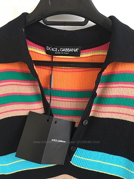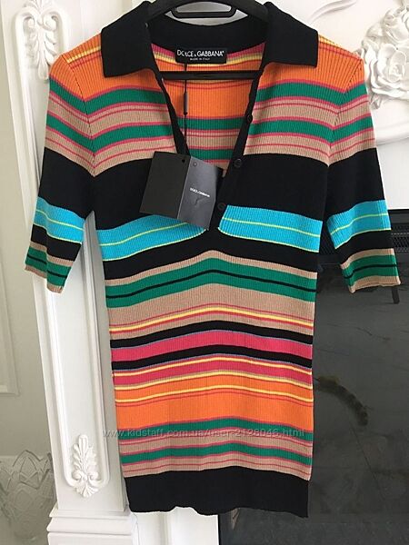 В наявності нова футболка поло Dolce&Gabbana р.36 (гарно тягнеться, підійде на 36-38-40), полосами різного кольору. Комірець, горловина та нижня резинка чорного кольору. Горловина оздоблена брендованими пуговка, що дозволяє носити як у відкритому, так і закритому стані. Матеріал рубчик, ідеально сідає по фігурі, 65% коттон, 35% поліестер. Всі лого.100% Оплата на карту Приват Банк чи післяплаою при умові часткової передплати (від 200 грн). Доставка посилки і наложеного платежу за рахунок покупця.