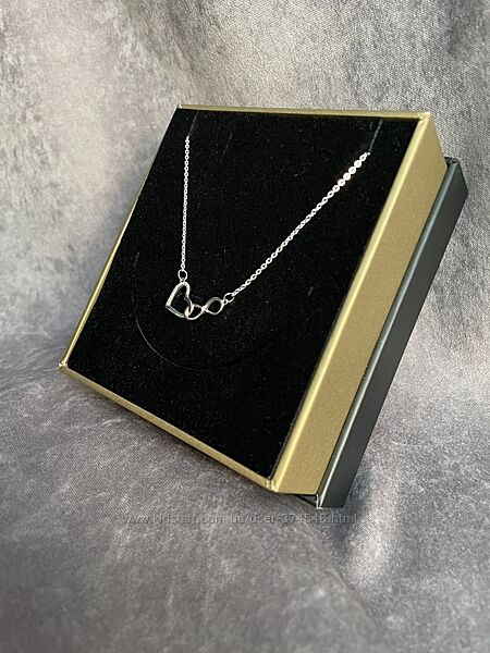 Колье из белого золота 585 пробы с бриллиантами — символ любви, гармонии и бесконечностиИзысканное колье с тонкой цепочкой и подвеской в виде сердца и знака бесконечности.
