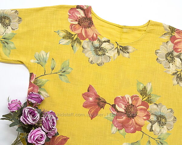 Эффектная, яркая, в трендовый цветочный принт, выполнена из натуральной дышащей фактурной ткани, мягенькая, очень приятная к телу. Модель оверсайз, свободная, рукав цельнокройный. Легко вписывается в гардероб, сочетается с любым низом.