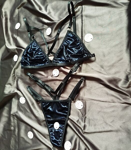 Комплект из приятного к телу бархатаТоненький,цвет черный+синий,переливается