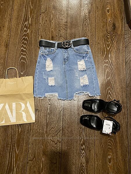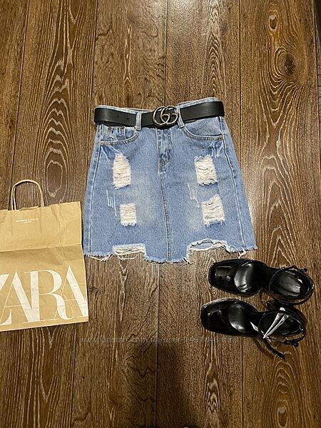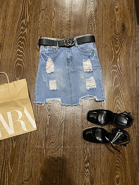 Крута джинсова юбка висока посадка з рваностями і бахромоюрозмір 34-36
