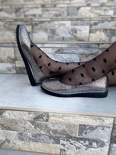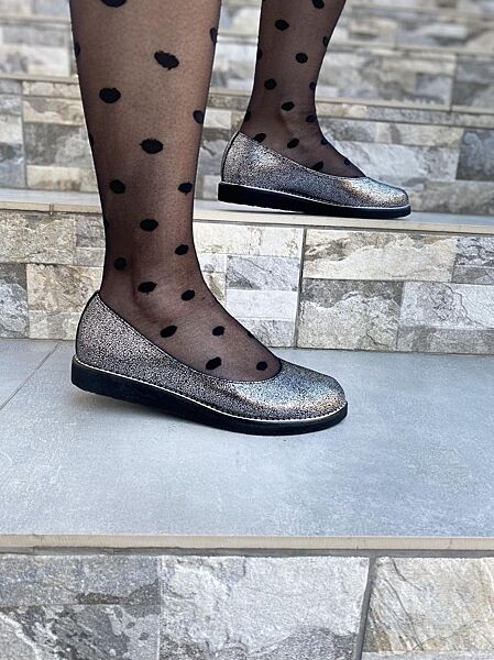 Балетки жіночі INJERS 191 срібло весна-осінь шкіра натуральна