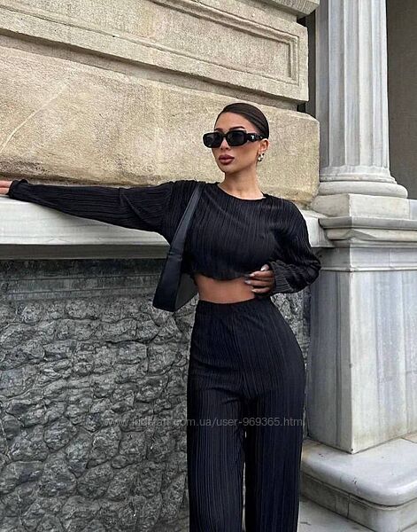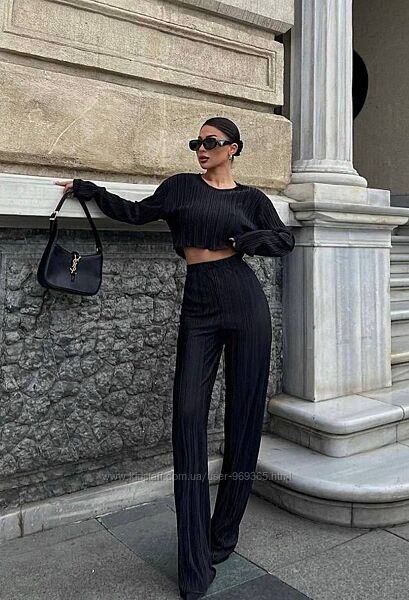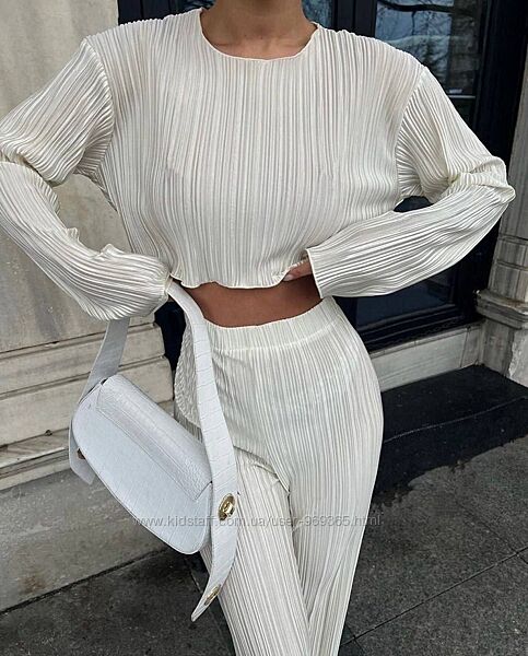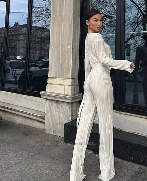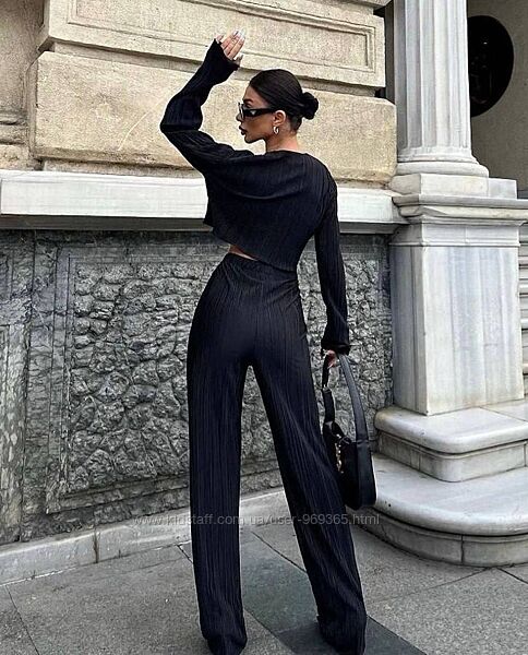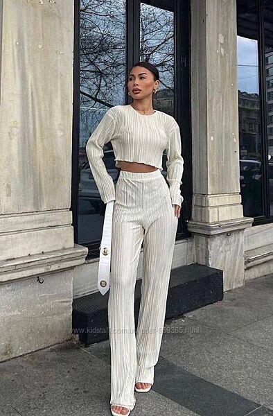 Жіночий костюм з вишуканого гофрованого рубчику. Він вражає своєю неповторною текстурою та стильним дизайном, комфортний у носінні, зберігає свій вигляд протягом тривалого часу