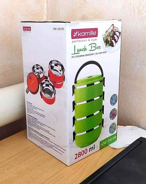 Подробное описание: Ланч бокс обеденный 4-ной Kamille Голубой KM-2107А на 2,8 л