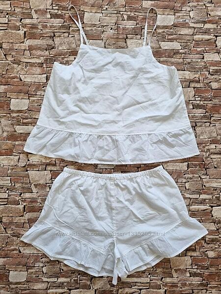 Подробное описание: Біла бавовняна піжама з оборками Reserved. Шорти і майка.